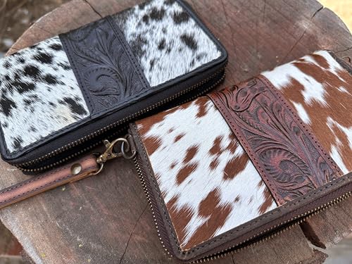 in-demand ! Clutch for Women Designer Card Wallet for Women Cowhide Fur with hand tooling Design on leather wallet for Women Leather (Brown)