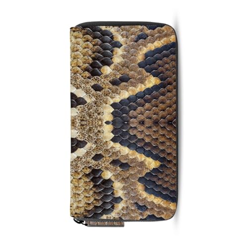 Snake Skin Leather Long Wallet Organizer with Zipper Purse Clutch Bag for Women Men Key Card Coin Passport Checkbook 8 x 4 inch