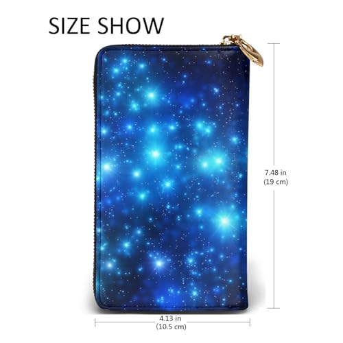 Blue Shining Stars Wallet for Men Women Long Purse Leather Clutch Large Business Handbag Travel Phone Holder Credit Card Holder Money Case with Zipper Leather Wallets Gift