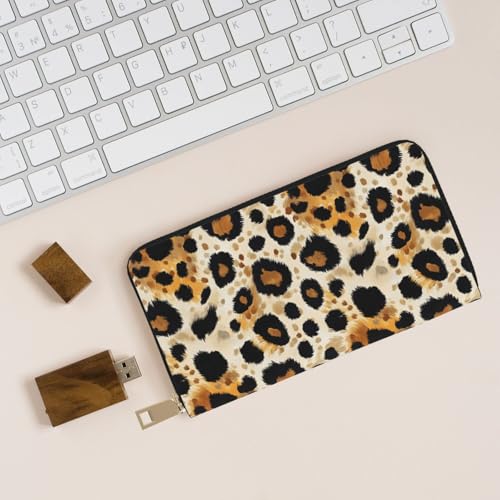 Leather Thin Slim Wallets for Women Men - Fashion timeless Leopard Pattern Print Card Wallet Holder with Zipper