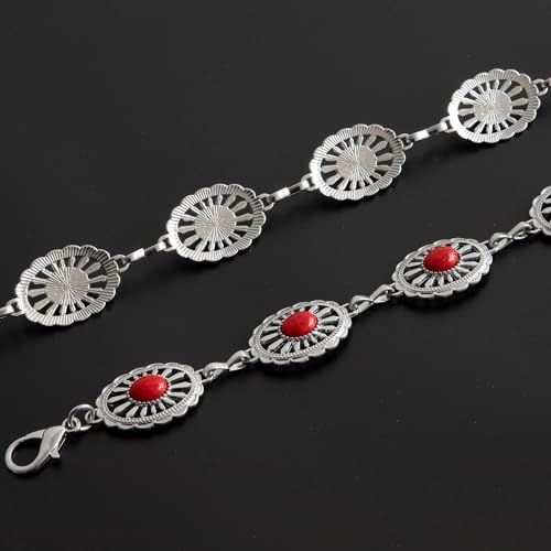 Western Concho Chain Belt for Women Boho Cowgirl Metal WaistChain with Turquoise