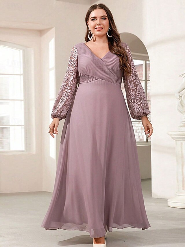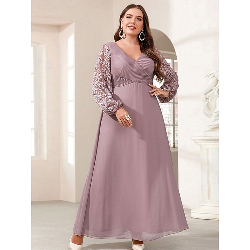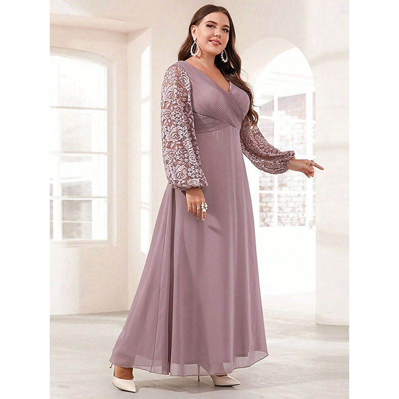 More information about A-Line Evening Gown Elegant Dress Formal Wedding Floor Length Long Sleeve V Neck Chiffon with Floral Print