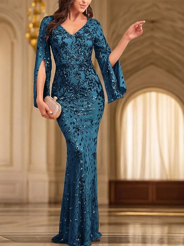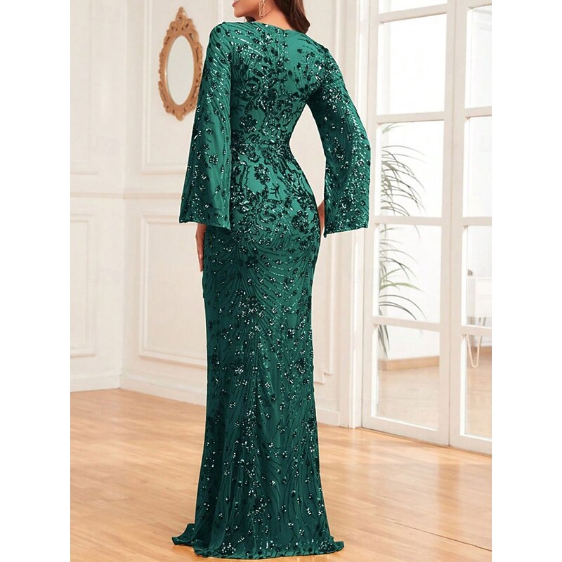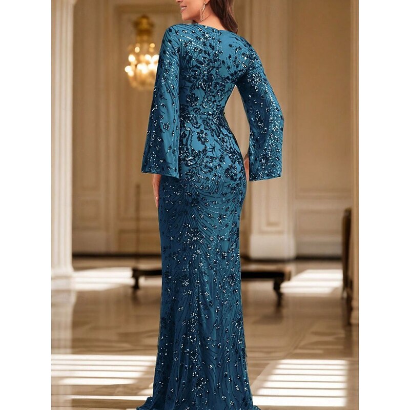More information about Mermaid / Trumpet Quinceanera Dresses Elegant Dress Wedding Wedding Guest Floor Length Long Sleeve V Neck Spandex with Sequin