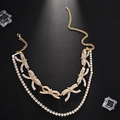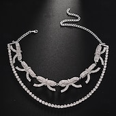 More information about Choker Necklace Zircon Rhinestones Women's Fashion Artistic Luxury Double Layered Bowknot Wedding Circle Necklace For Wedding Party Daily