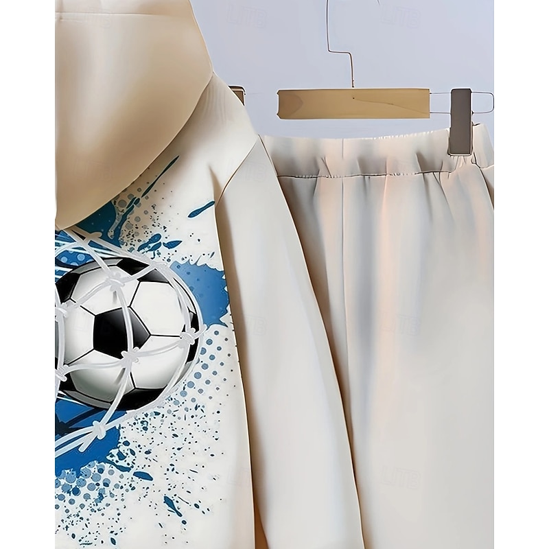 in-demand ! Boys' 3D Football Hoodie & Sweatpants Set Sports Suit Tracksuits Long Sleeve Spring Fall Daily Basic Casual Kids 4-12 Years Hooded Outdoor Vacation Sports Tailored Fit