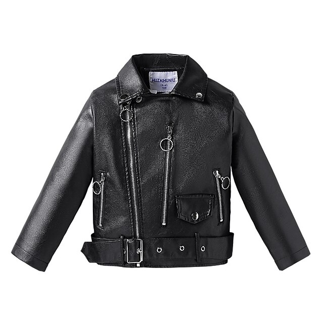 Why Choose Girls' Black Leather Jacket Solid Color Active Zipper Outdoor Coat Outerwear 3-7 Years Spring Black Yellow Pink?
