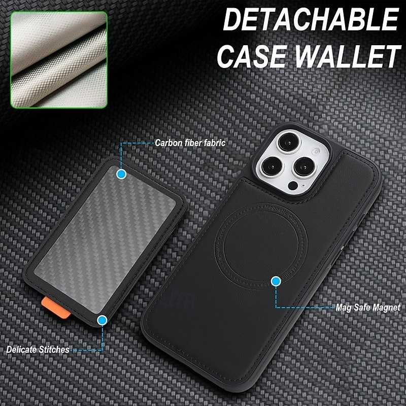 More information about Phone Case For iPhone 17 Pro Max 17 Air 16 15 14 Pro Max Plus 16e 13 Pro Max Back Cover Magnetic Kickstand Card Slot Retro TPU Carbon Fiber