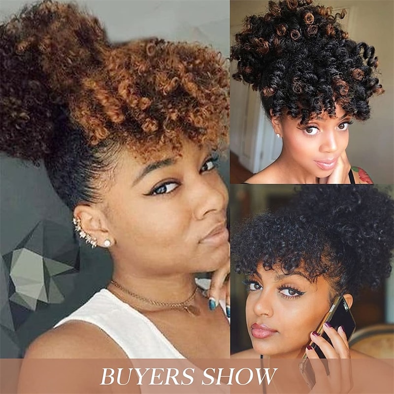 $14.49 - Kinky Curly Afro Puff Ponytail Hair Extensions with Clip-in Bangs for Black Women 2025. Shop for cheap Bangs online? Buy at lightinthebox.com on sale today!
