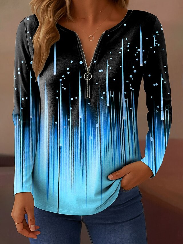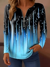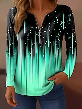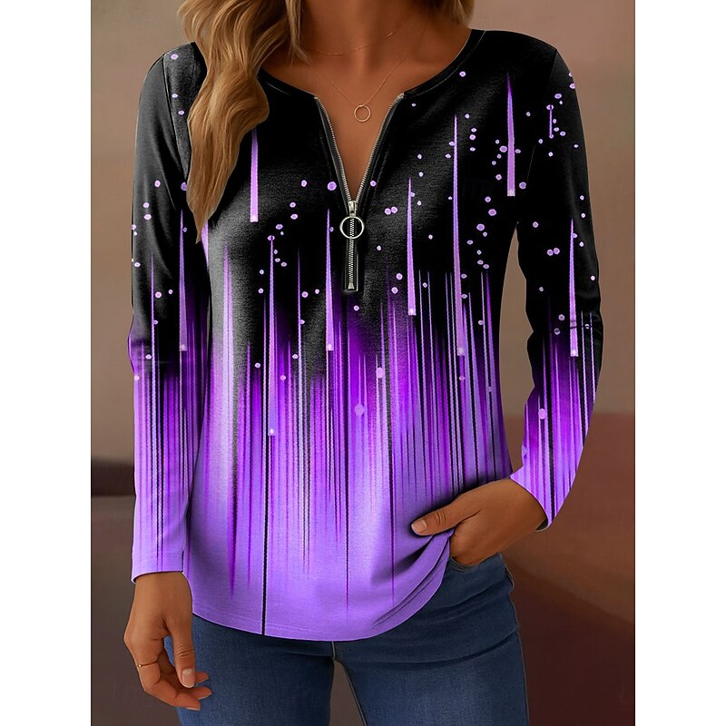 More information about Women's T Shirt Ombre Graphic Abstract Elegant Vintage Fashion Long Sleeve V Neck Regular Tops Daily Weekend Zipper Print White Pink Blue Purple Green Spring Fall