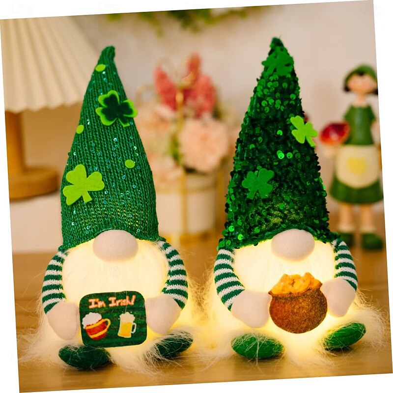 $9.99 - St. Patrick's Day Sequined Hat with Light Rudolf Doll - St. Patrick's Clover Gnome for Indoor Restaurant Dining Table Festive Atmosphere Decoration 1pc 2025. Shop for cheap Decorative Lights online? Buy at lightinthebox.com on sale today!