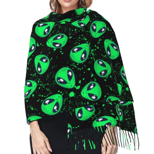 VOSERY Womens Scarf Pashmina Shawls Wraps - cute green alien Print Fashion Scarves Fall Winter Large Blanket Scarf