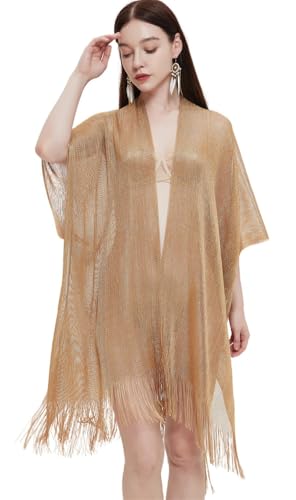 Fabric type: 100% PolyesterCare instructions: Hand Wash OnlyOrigin: ImportedMaterial: This open front fringe shawl is made of soft polyester material, soft and elegant, and looks very graceful when gently draped over the shouldersSize: 45.3 * 25.6 inches, women's oversized scarf can lightly wrap around the body during party or dating, keeping you warm and comfortable in cool weatherFeatures: charming metallic shawl, suitable for evening dresses, it can complement any outfit, suitable for any wedding, party, cocktail party, date, travel, daily life, etcVersatile for Any Outfit: The cardigan can be naturally opened during daily wear, making it perfect for pairing with dresses, casual and formal clothing; It can also be worn as a headscarf, wrapped around the neck as a scarf, tied around the waist or draped over the armsGift: Soft and metallic shawl adds fashion and elegance to your outfit, perfect for giving as a gift to women on Thanksgiving, Christmas, New Year, birthdays, and other holidays Perfect for everyday use. first-class materials and excellent craftsmanship ensure long-lasting durability.