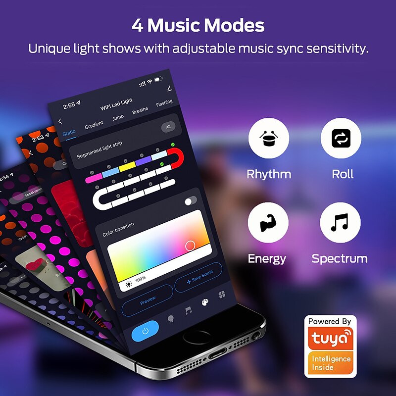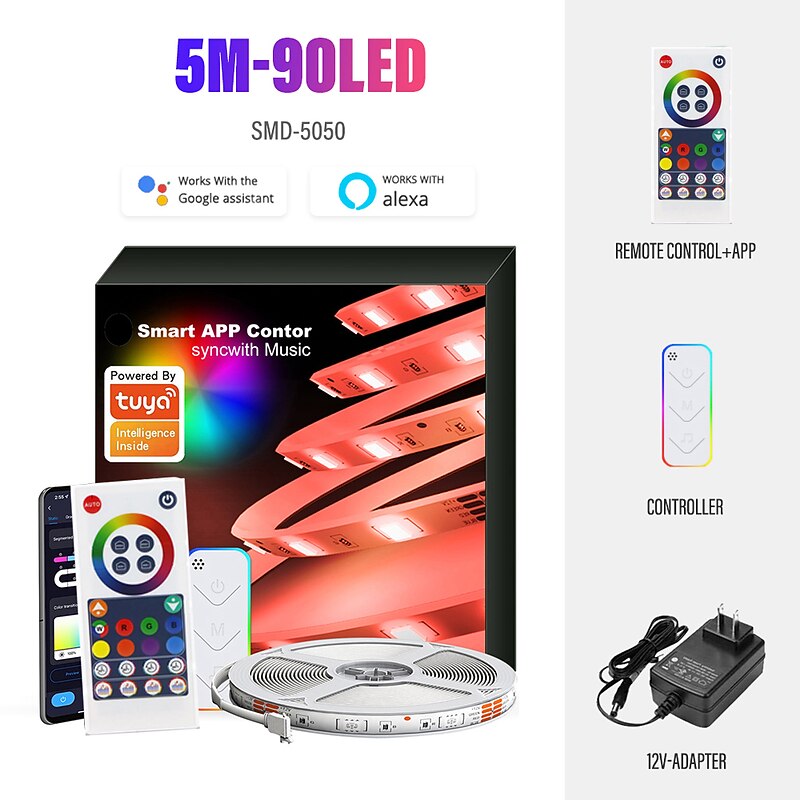 $35.99 - RGBIC LED Strip Compatible with Alexa Google Home Color Changing LED Light Music Sync TUYA WiFi for Bedroom Ceiling Playroom Shustar 2025. Shop for cheap WiFi&Music Control online? Buy at lightinthebox.com on sale today!