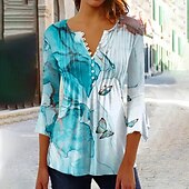 in-demand ! Women's Shirt Blouse Flower latest Casual 3/4 Length Sleeve V Neck Regular Tops Daily Going out Print Light Blue Fall
