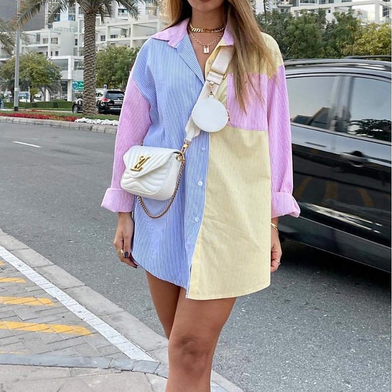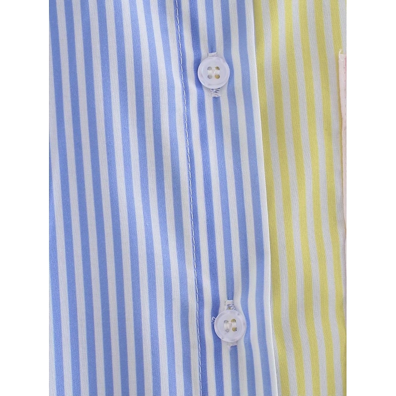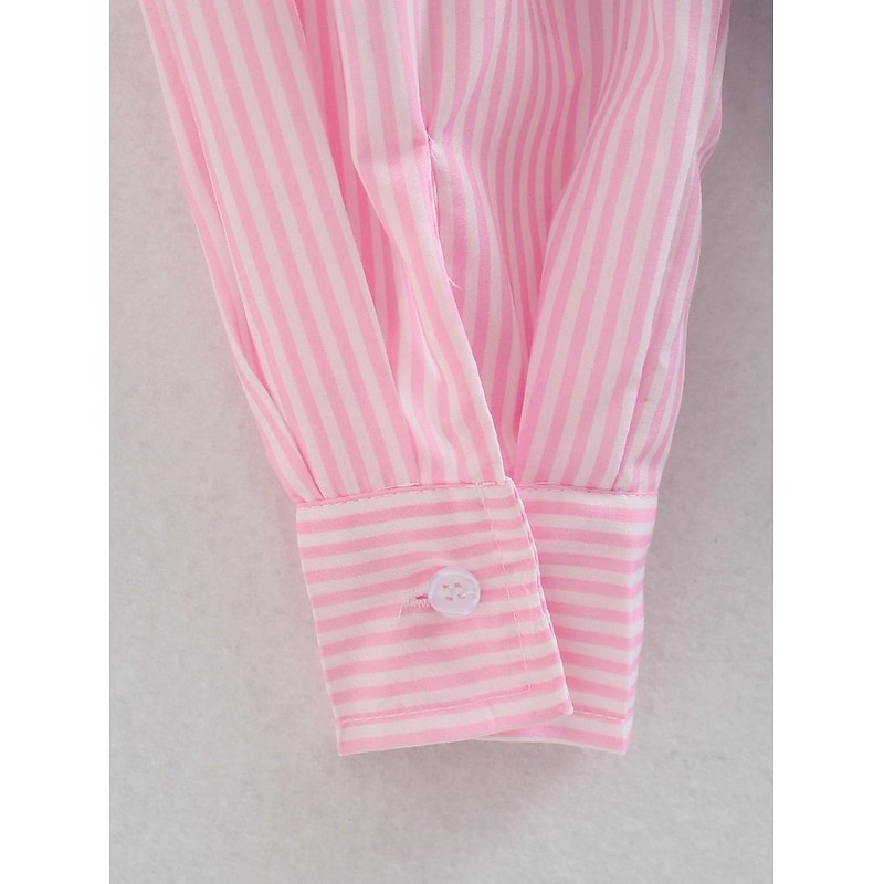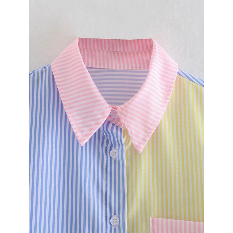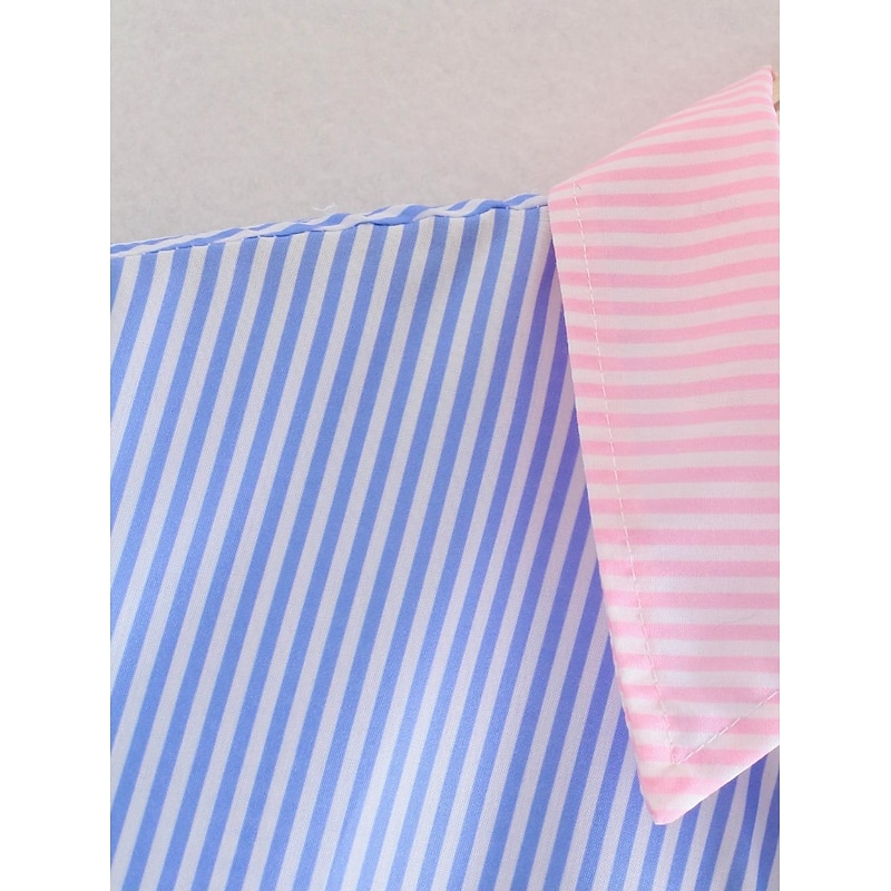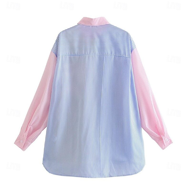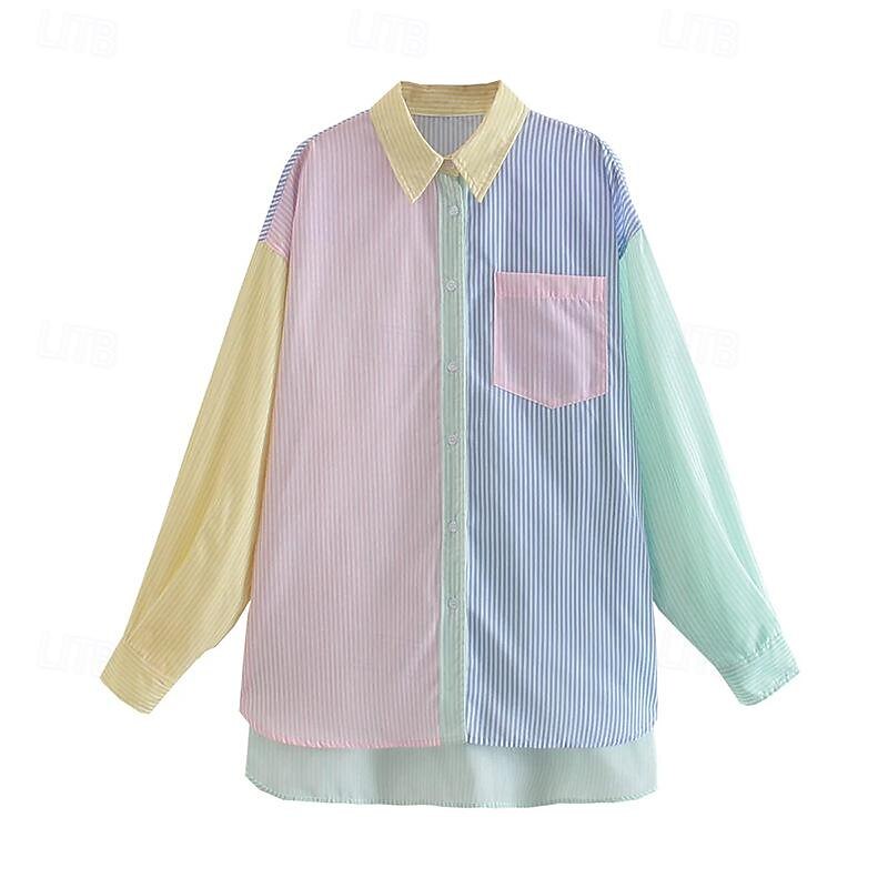 More information about Women's Shirt Blouse Casual Color Block Striped Buttons Pocket Print Long Sleeve Regular Tops Shirt Collar Daily Pink Blue Spring & Summer
