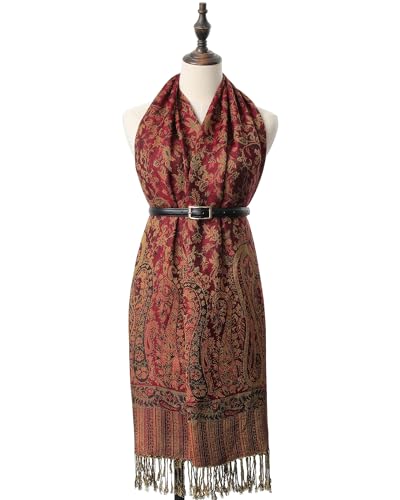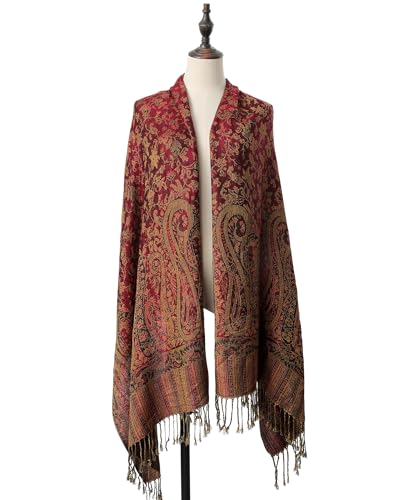 Fabric type: PashminaCare instructions: Hand WashOrigin: ImportedSOFT AND COMFORTABLE DRAPE SHAWL , SKIN-FRIENDLY FABRIC - Introducing our beautifully crafted Shawl Wraps for Women, designed to help you achieve an effortlessly chic and stylish look. Made of superior quality fabrics, our collection features a variety of luxurious materials, perfect for accessorizing any outfit.ETHNIC DESIGN WRAPS, MANY OCCASIONS USES - Our Pashmina Rave collection features vibrant colors and eye-catching designs that are sure to make you stand out from the crowd. Whether you're headed to a music festival, concert, or wedding, our rave scarf is the perfect addition to your outfit.LARGE AND LONG SCARF, REVERSIBLE TO USE - Our pashmina rave is reversible , Scarf length 70.87 inches(180cm), width 27.56 inches(70cm), tassel 7.87 inches(20cm),perfect for adding a touch of elegance to any traditional or ethnic outfit. Our collection features intricate designs and charming prints that are sure to complement any wardrobe.RICH COLORS, MULTIPLE WEARING STYLES - As a trendy scarf wrap and popular gift, this shawl can be wore in many ways: 1)As a over the shoulder cover up which is the most popular for weddings; 2)As a cozy blanket scarf; 3) As a poncho or shawl; 4)As a traditional Scarf; 5) As a blanket on the lap, A variety of colors are available, you can also lay it flat to decorate your room.A STYLISH WINTER ITEM THAT ALSO MAKES A PERFECT GIFT FOR HER - Invest in our high-quality shawl wraps for women today and elevate your style to a whole new level. With HAIMEIKANG, you can be sure that you're getting a product that's both fashion-forward and timeless, perfect for any occasion, Perfect as a gift for your lover. Perfect for everyday use. first-class materials and excellent craftsmanship ensure long-lasting durability.