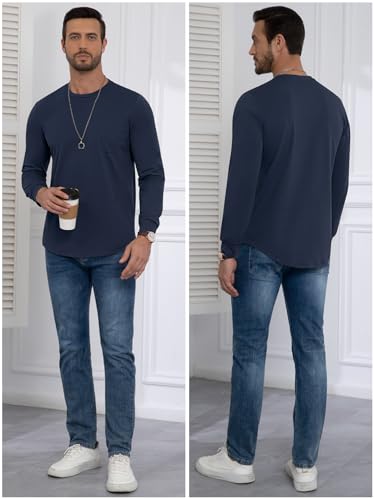 3 Pack Men's Long Sleeve Pure Cotton T-Shirt Crewneck Pocket Tee Longline Casual Lightweight Fall Basic Shirts