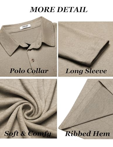 COOFANDY Men's Long Sleeve Polo Shirt Casual Dress Button Polo T Shirt with Pocket Basic Lightweight Collared Golf Shirt
