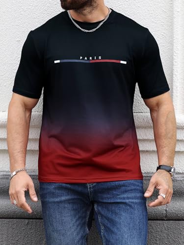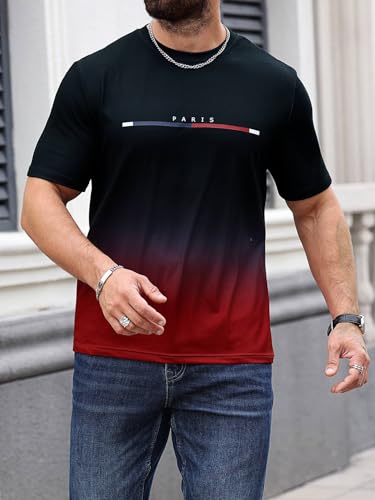 - Features: Letter print, ombre, short sleeve, round neck, mens t shirts, summer tops, fashionable