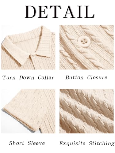 • Features: Men's breathable knit shirt, turn down collar, twisted cable knit, buttons placket, casual short sleeve, slim fit, high stretch, basic and timeless design style. The golf T-shirt is just right for daily wear, but will keep you cool in the heat