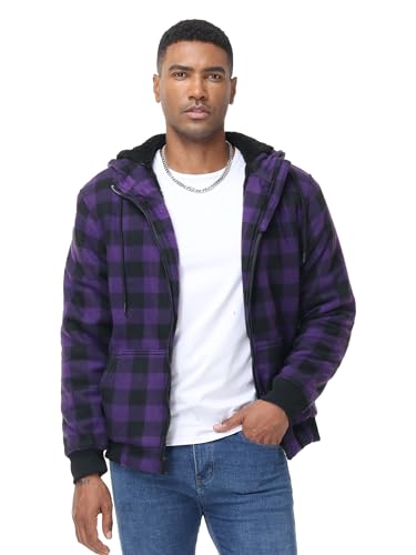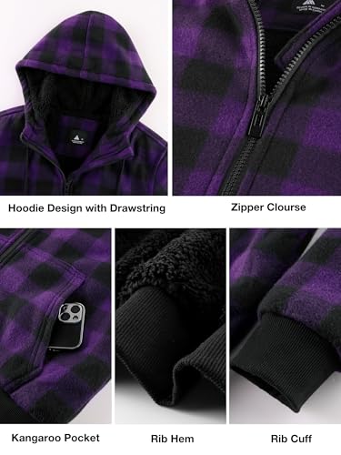 ZITY Hoodies for Men Flannel Fleece Sweatshirt Plaid Full Zip Up Jacket Sherpa Lined Winter cozy Coat
