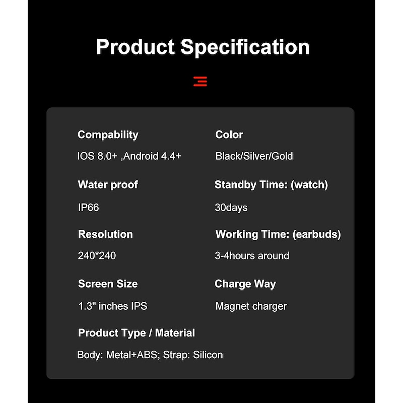 Highlights - 2 in 1 Smart Watch and Bluetooth Headphone: Get two devices rolled into one with the T20 Smart Watch that doubles up as a Bluetooth 5.0 headphone. - Ultimate Smart Wearable Experience: Enjoy an all-new level of smart wearable devices with this exceptional and innovative device. - Large Touch Color Screen: With a 1.3-inch round color touch screen, this watch is easy to navigate, and the perfect size for all-day wear. - Long Battery Life: With a 300 mAh polymer battery, this watch can last up to 3-10 days of continuous use and more than 30 days on standby when used without earphones. The earphones provide up to 3 hours of music playback. - Daily Activity Tracker: Keep track of your daily activity, heart rate, blood pressure, and SPO2 levels. This watch allows you to monitor your fitness progress and optimize your performance. - Seamless Music Control: Enjoy music playback and call reception while driving or working with this wireless stereo sound quality headphone. With the touch of a button, easily control your music and phone calls directly from your wrist. - Multifunctional Features: This watch offers a range of features including time and date set manually, sleep monitoring, notifications, camera remote, wrist sense, clock, non-disturb, sedentary, find phone, find watch, and stopwatch. - Compatibility: This watch is compatible with android 4.4 and above, iOS 8.0 and above. Simply download the Brandfit app on your phone and pair your watch with your phone via the app for an effortless set-up. Perfect for everyday use. first-class materials and excellent craftsmanship ensure long-lasting durability.