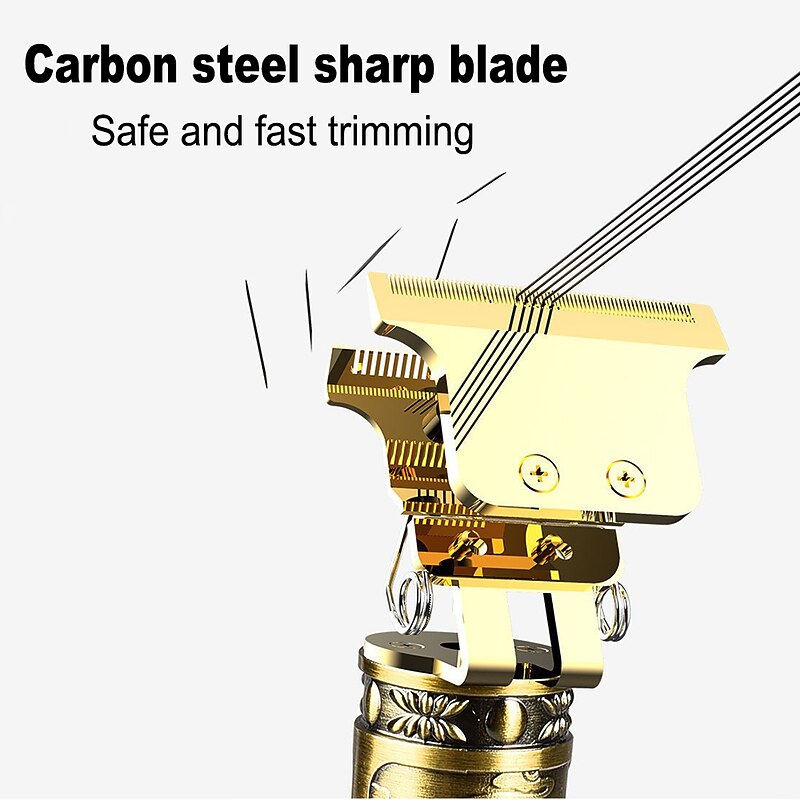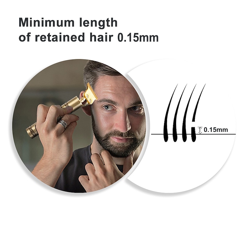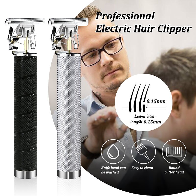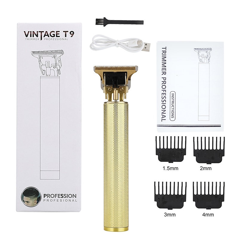 Highlights - Professional hair clipper designed for smooth, quick, and precise clipping performance on all types of hair - Features long-lasting high-carbon enhanced self-sharpening precision stainless steel blades that don't get tangled in hair - Allows for easy creation of a variety of hairstyles - Equipped with 3 different length limit combs (1mm, 2mm, 3mm) for custom cutting lengths - Comes with a cordless zero-gapped trimmer hair clipper that includes a USB cable and cleaning brush - T-shaped blade design ideal for fine styling such as side and neckline without damaging skin - Can be charged through USB, with a built-in rechargeable lithium battery that supports 120 minutes charge for 120 min cordless use - Waterproof and low-noise for convenience and ease of use - Exquisite and compact design with all-metal body, non-slip skeleton, and up-to-date diamond-shaped texture - Suitable for oil head, carving, vintage hair styles, bald, and perfect for travelling - Comes in a cool and practical design, making it a perfect gift choice for men.