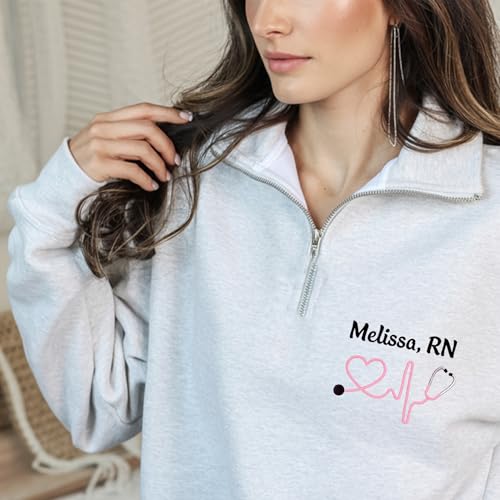 Personalized Nurse Quarter Zip Sweatshirt, Custom Embroidered Nursing Sweater, Registered Nurse Quarter Zip Shirt, Custom Embroidered Hoodies for RN, NP 2 Multi