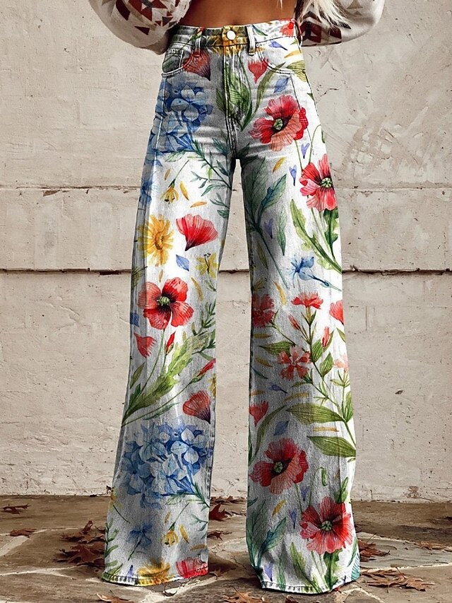This Women's Wide Leg Chinos Vacation Fashion Streetwear Full Length High Waist Floral Pocket Printing Comfy Soft plush Micro-elastic Outdoor Street White Yellow Navy Blue Blue Summer Spring Regular combines elegant design with practical functionality. Every detail has been carefully considered to ensure you get the best possible experience. The premium construction means this product will serve you well for years to come.