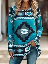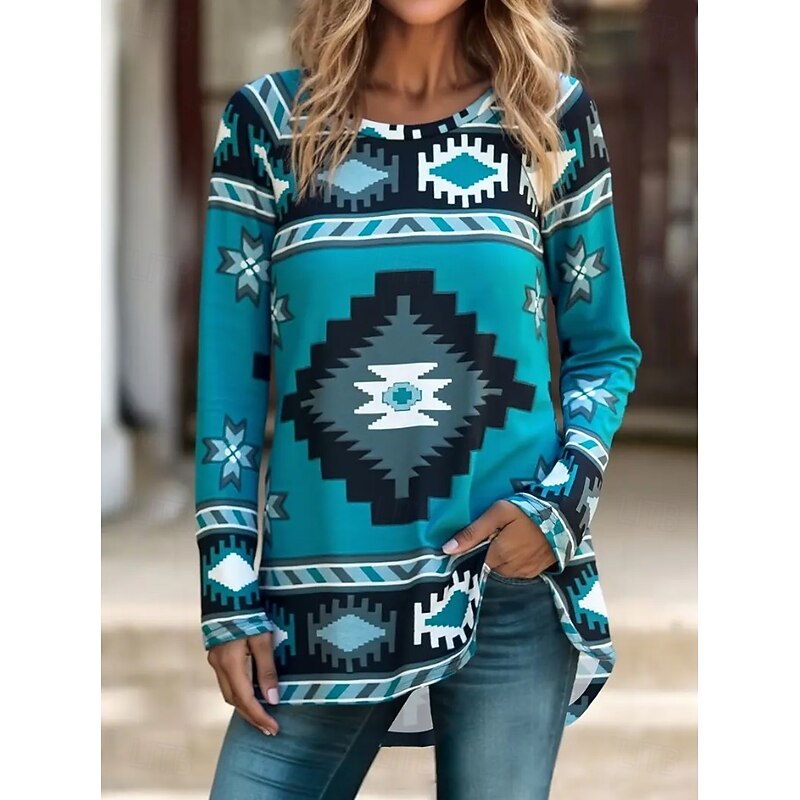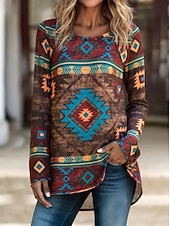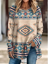 This Women's T Shirt Graphic Tribal Vintage sophisticated Casual Long Sleeve Crew Neck Long Tops Daily Going out Weekend Print Blue Brown off-white Spring Fall combines elegant design with practical functionality. Every detail has been carefully considered to ensure you get the best possible experience. The premium construction means this product will serve you well for years to come.
