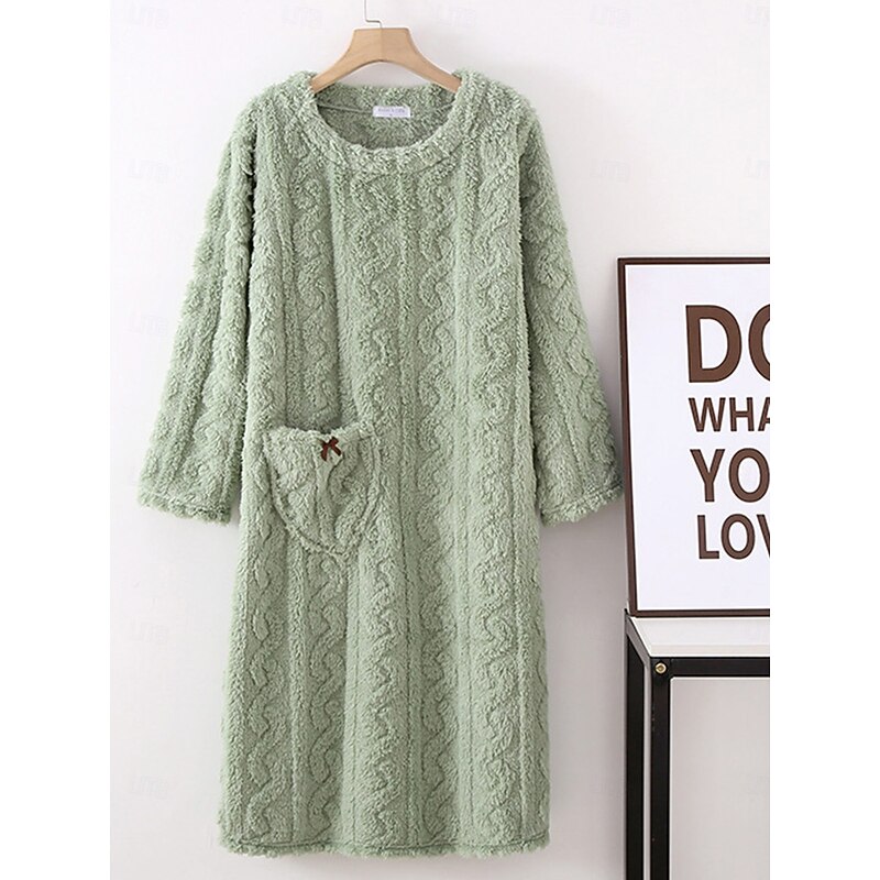 Women's Pajamas Nightgown Pure Color easy Comfort Comfrt Home Fleece Crew Neck Spring Fall Home Outfits