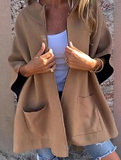 More information about Women's Casual Jacket cozy Zipper Pocket Fashion Plain Street Holiday Zipper Regular Stand Collar Regular Fit 3/4 Length Sleeve Outerwear Brown Fall Winter