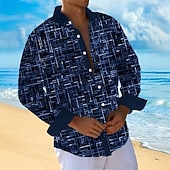 More information about Men's Geometric Line Shirt Button Up Shirt Casual Dress Shirt Long Sleeve Fashion Casual Vacation Daily Streetwear Summer Spring Turndown 3D Print Collared Shirts Dark Blue