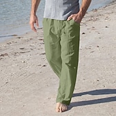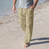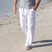 More information about Men's Linen Pants Trousers Summer Pants Baggy Pants Beach Pants Drawstring Front Pocket Straight Leg Plain Comfort Breathable Full Length Yoga Holiday Beach Fashion Hawaiian White Navy Blue