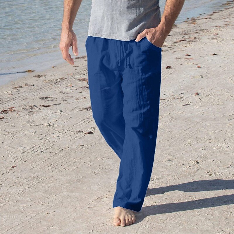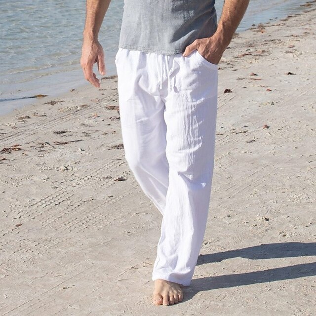 in-demand ! Men's Linen Pants Trousers Summer Pants Baggy Pants Beach Pants Drawstring Front Pocket Straight Leg Plain Comfort Breathable Full Length Yoga Holiday Beach Fashion Hawaiian White Navy Blue