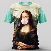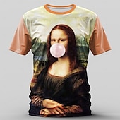 in-demand ! Men's Mona Lisa T Shirt Short Sleeve T shirt 3D Print Crew Neck Shirt Retro Vintage Casual Street Style Sports Outdoor Holiday Going out Green Khaki Spring & Summer Clothing Apparel S M L XL 2XL 3XL
