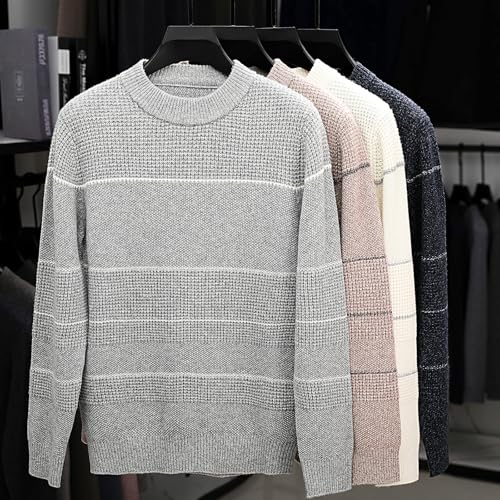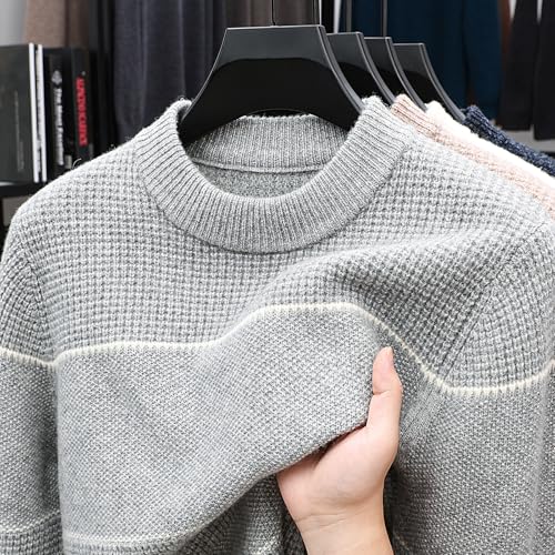 Men's 100% Wool Striped Sweaters Long Sleeve Round Neck cozy Tops