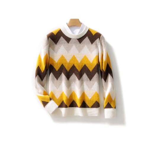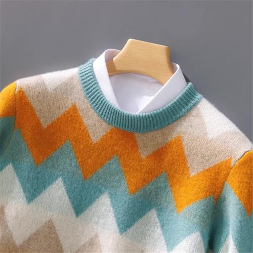 More information about Men's Merino Wool Sweater Autumn Winter Thickened Loose O-Neck Stripe Knitted Pullover Contrast Color Jumper Top