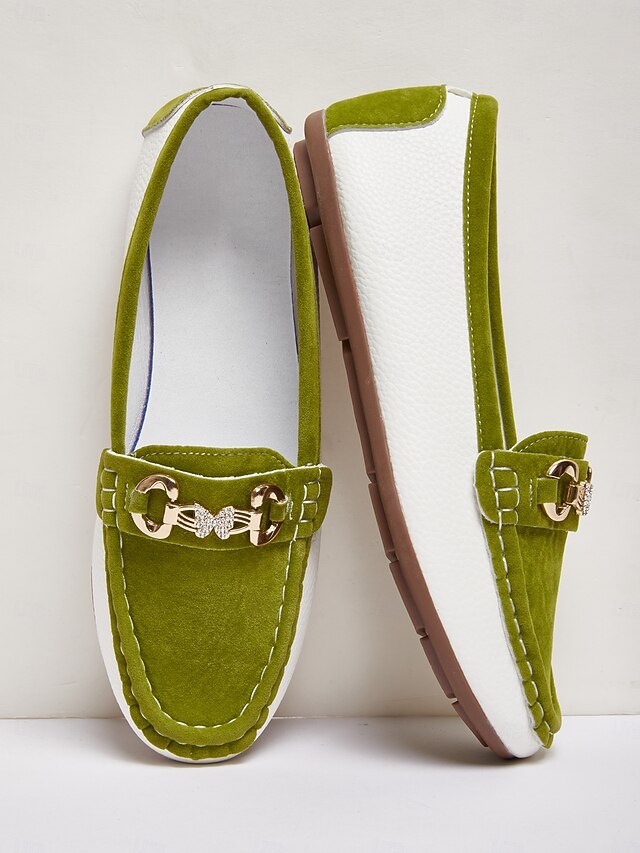 Why Choose Women's Green Loafers – Slip-On Driving Shoes with Rhinestone Metal Buckle for Office and Casual Outfits?