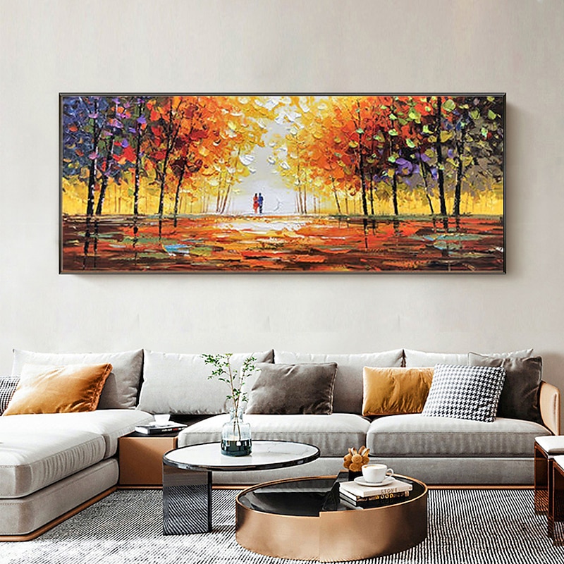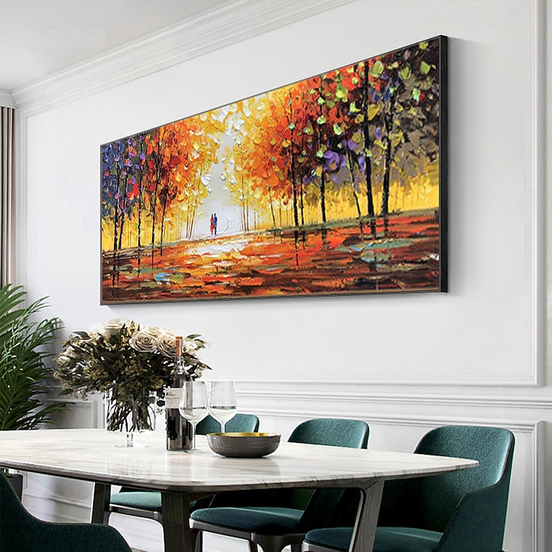 Handmade Oil Painting Canvas Wall Art Decoration Abstract Colorful Couple Painting Abstract Landscape Painting for Home Decor Rolled Frameless Unstretched Painting
