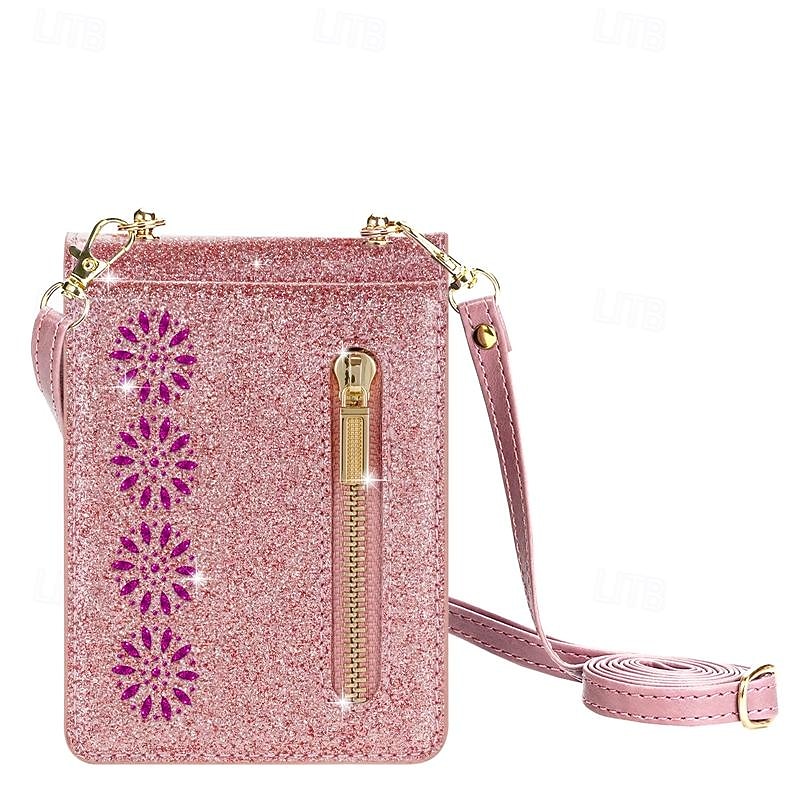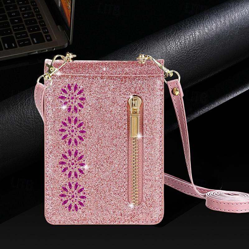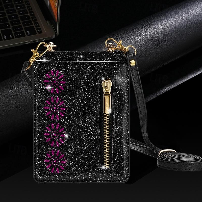 in-demand ! Phone Case For Samsung Galaxy Z Flip 7 Z Flip 6 Z Flip 5 Z Flip 4 Z Flip 3 Flip Cover Zipper with Lanyard Bling Glitter Shiny Retro PC PU Leather