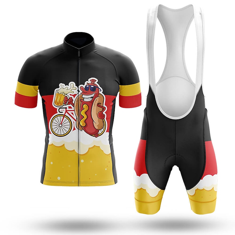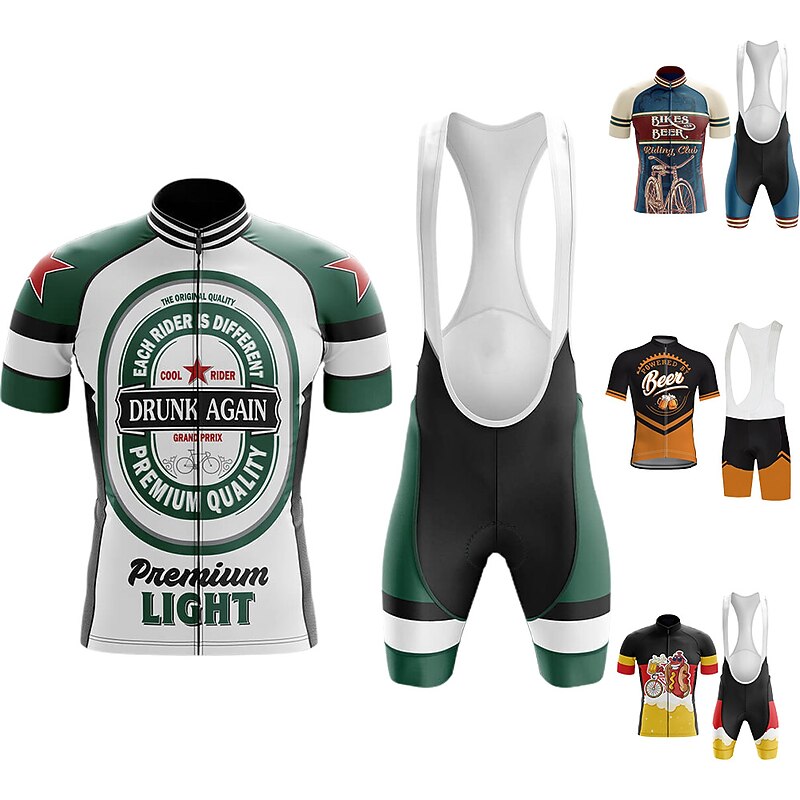 Men's Cycling Jersey with Bib Shorts Cycling Jersey Set Short Sleeve Mountain Bike MTB Road Bike Cycling Black Royal Blue Green Oktoberfest Beer Bike Clothing Suit 3D Pad Breathable rapid Dry