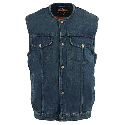 in-demand ! Biker's Edge Men's Denim Collarless Club Style Vest
