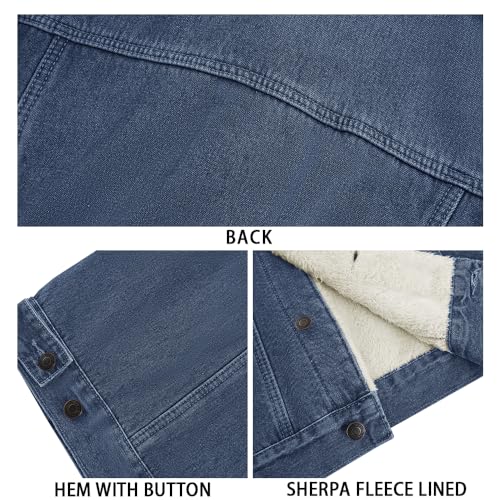 Runcati Mens Sherpa Fleece Lined Denim Jacket Casual Winter cozy Button Down Trucker Jacket Coat with Pocket