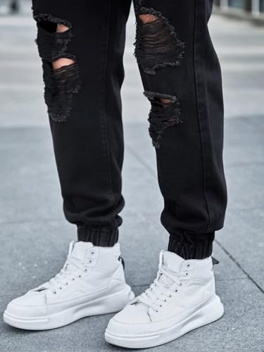 More information about OYOANGLE Men's Drawstring Waist Ripped Denim Jeans Streetwear Distressed Jogger Cargo Pants with Pocket