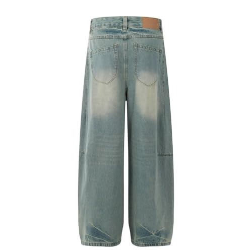 Jeans Pants Trousers Denim Retro Trendy Water Washed Blue Premium Wide Leg Design Loose Straight for Men