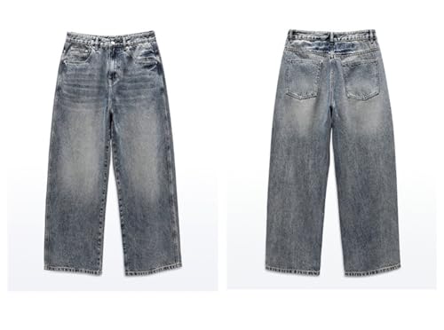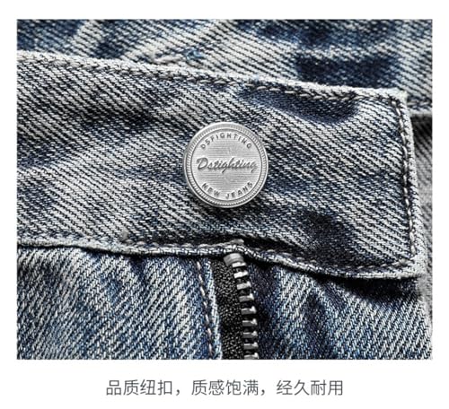 in-demand ! Jeans Pants Trousers Denim Korean Retro Loose for Youth and plush Washed Navy Blue High-end Commuting Men