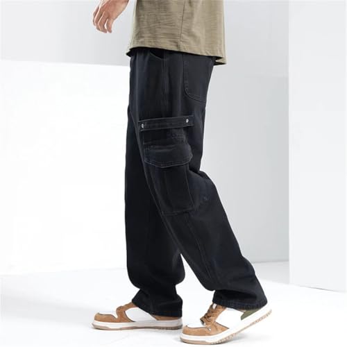 Men Loose Fit Baggy Pants Wide Leg Jeans Black Gray Streetwear Multi-Pockets Cargo Jeans