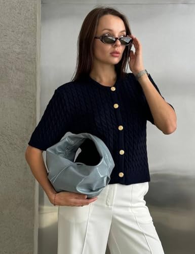 • Feature: The comfy cropped cardigan hem adds a trendy and flattering for women with slim fit, short sleeve, crewneck, button down, drop shoulder, crop cable knit cardigan