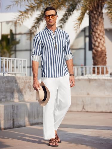 Fabric type: Linen,CottonCare instructions: Machine Wash【PREMIUM COTTON FABRIC】-- Men's 2 piece cotton linen set are made of great fabric, lightweight, breathable and soft touch, moisture-wicking. This beach linen outfits signals the start of holiday! Make sure add this linen 2 piece outfits to your wardrobe for summer look.【CASUAL 2 PIECE OUTFITS】-- Men's henley shirts featuring with stand collar, button closure, long sleeve with sleeve tabs, simple style, solid color, slim fit, rounded hem. The cotton beach pants features elastic drawstring waist, two slant pockets and one back pocket perfect for storing phones, sunglasses or gadgets. The simple and vintage design makes it never be out of fashion.【MUILT-MATCHED STYLE】-- These 2 piece summer outfits can be matched with sneakers, sandals for a chic and trendy look. Cotton Linen two piece outfits also can be worn alone. The men’s cotton linen henley shirts can match with shorts, pants, trousers or jeans. The casual loose pants can match with t-shirts, tops, tanks. Simple and classic matching of shirts and pants suits that denotes a relaxed, carefree attitude, which is especially appropriate for summer.【OCCASIONS】-- The men’s 2 piece shirt and pant sets perfect for daily life, yoga, casual, lounge, sleeping, beach, tropical Hawaiian, vacation, travel, work, home, hip hop, street, etc. Men's linen outfits will also be a good gift for your father, brother, boyfriend, husband, son or other male friends.【GARMENT CARE】-- The 2 piece beach outfits sets machine washable and easy to maintain. If you want a looser fit, please choose one size up. Perfect for everyday use. first-class materials and excellent craftsmanship ensure long-lasting durability.
